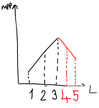 Figure 2. The relationship between labour (L) and marginal physical product (MPP)