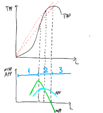 Figure 3. The relationship between Total Physical Product (TPP), Average Physical Product (APP), and Marginal Physical Product (MPP)